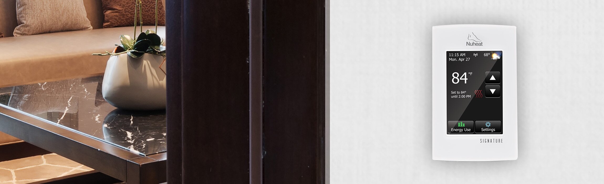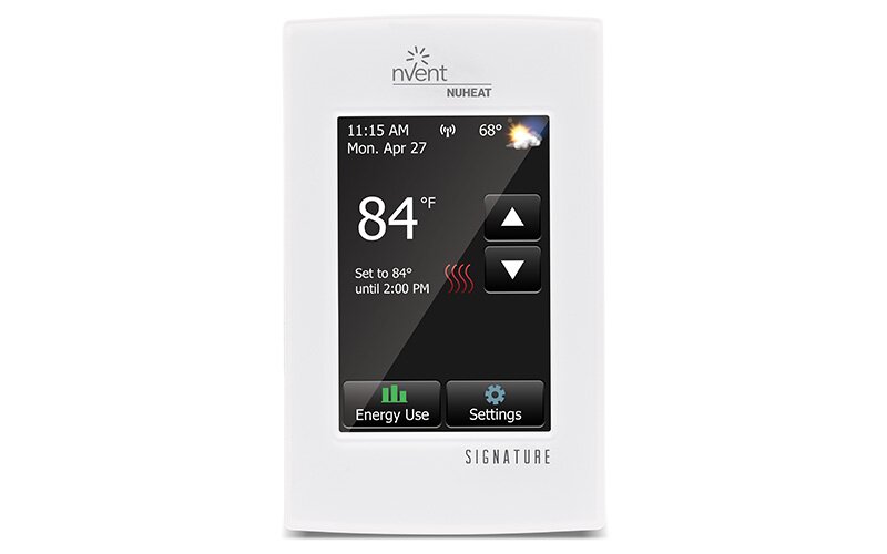 Nuheat offers North America’s first WiFi-enabled thermostat for floor heating systems. You have the ability to remotely control your floor heating system through an iOS and Android smartphone app – change your settings from anywhere you are. The NUHEAT Signature enables Floor Heating for the Connected Home!